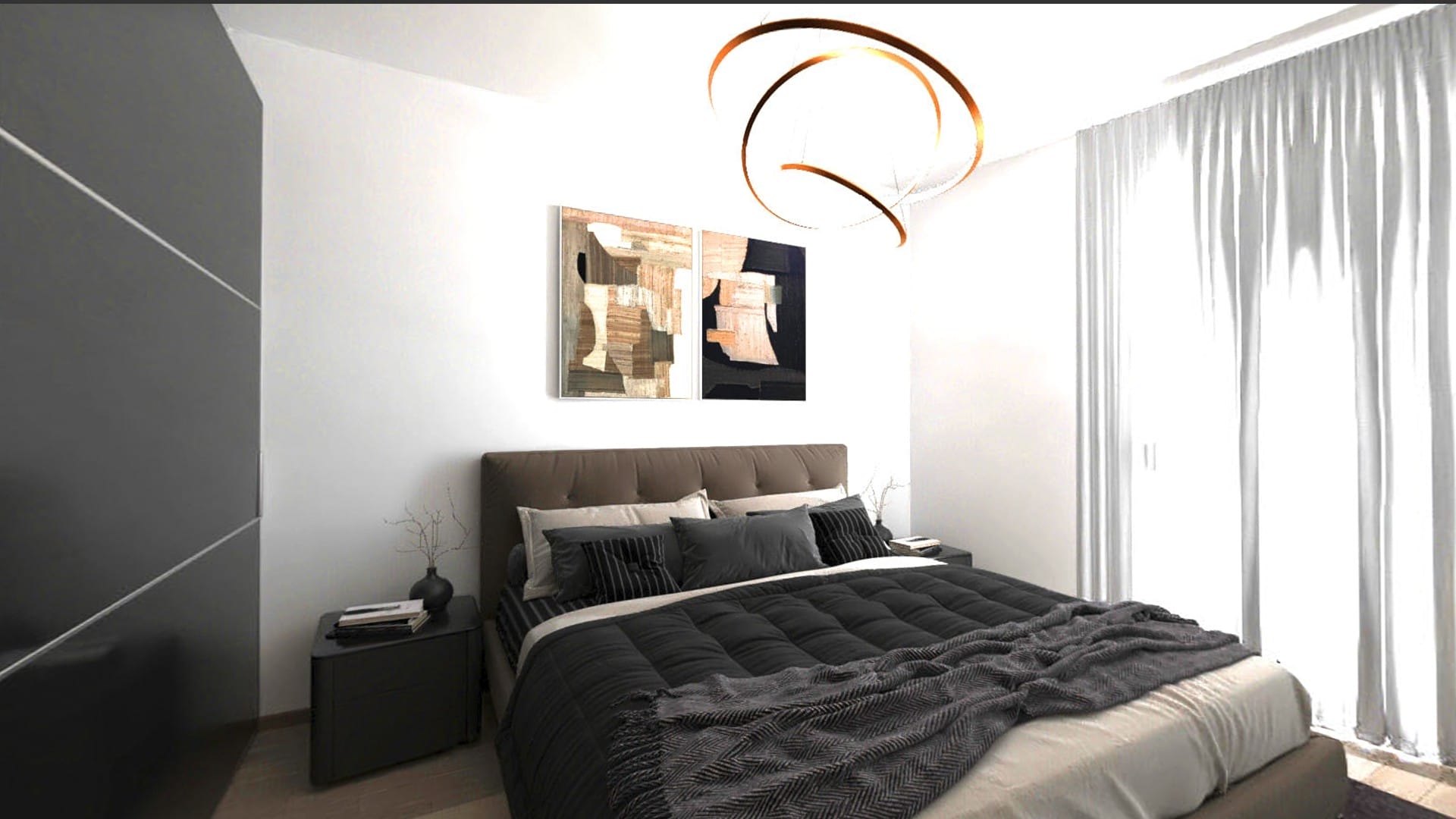 Appartamento trilocale di 84 m2, con balcone loggiato. Composto da: soggiorno con affaccio sul balcone, cucina a vista, disimpegno zona giorno – notte attrezzabile con armadio a muro, camera da letto, cameretta, antibagno, bagno, balcone loggiato, cantina.